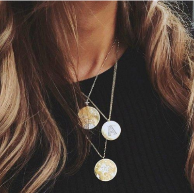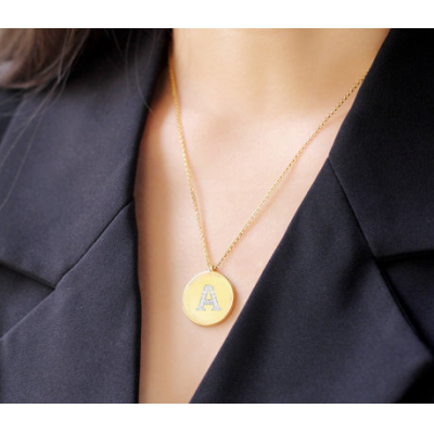 首页 > Trang sức đá quý > chuỗi hạt > 【林志玲 姚晨 蔡依林同款】APM Monaco金黄色英文名字首字母项链女 圆牌毛衣锁骨颈链 AC3880OXY 简约S925银挂件情侣闺蜜送女友礼物中性男款潮首饰品