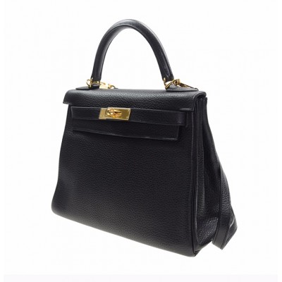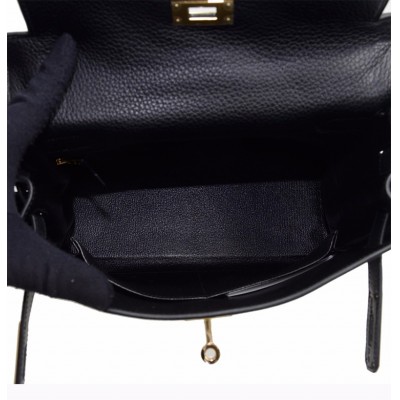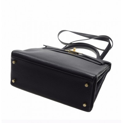 【包邮包税】HERMES/爱马仕 KELLY系列女士 黑色TOGO牛皮银扣单肩包手提包
