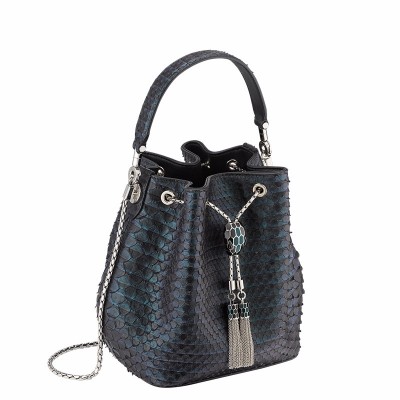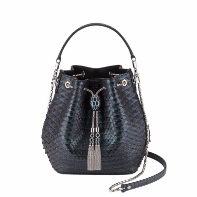 【包邮包税】BVLGARI/宝格丽 19秋冬新款 Serpenti Forever蛇首扣褶纹蟒蛇皮水桶包 288139【高订商品,拍前请咨询客服】