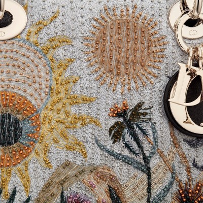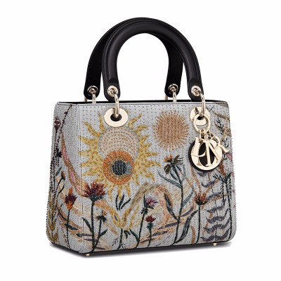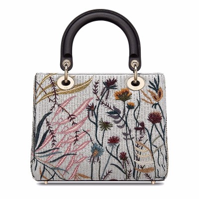 【包邮包税】DIOR/迪奥 2020春夏新款 Lady Dior系列 女士灰色小牛皮拼接彩绣戴妃手提包 M0565OURV_M885