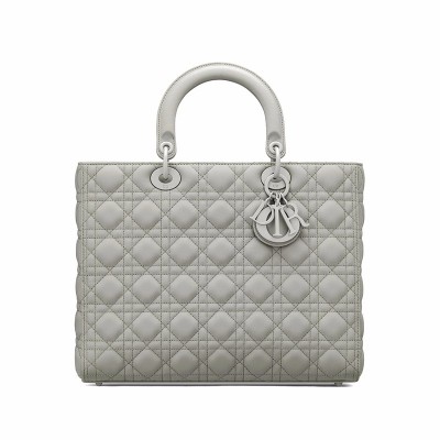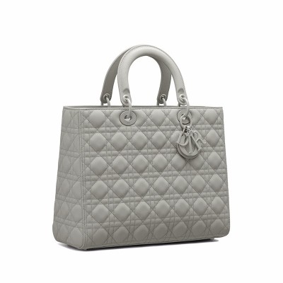 【包邮包税】DIOR/迪奥 2020春夏新款 LADY系列 灰色哑光小牛皮大号手提包 M0566ILOI_M41G
