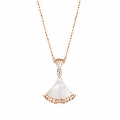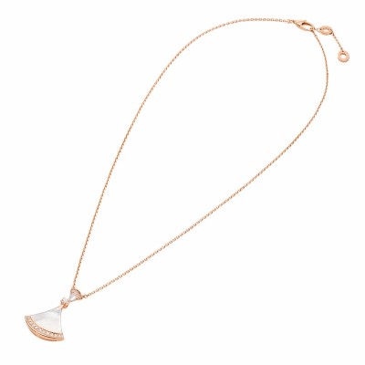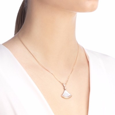 【包邮包税】BVLGARI/宝格丽DIVAS'DREAM系列 18K金玫瑰金镶白贝母与钻石 小扇子项链 356452