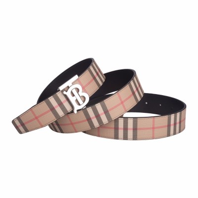 BURBERRY/博柏利 【20春夏新款】男士经典卡其色双面会标图案复古格纹TB标识皮带腰带 8021957