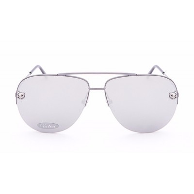 首页 > Phụ kiện > 墨镜 > CARTIER/卡地亚Panthère de系列金属太阳眼镜抛光黑色PVD镀层饰面双层鼻梁架银灰色镜面效果镜片镀钌饰面豹头饰以黑漆斑点脚丝带Cartier标识男士墨镜太阳镜眼镜ESW00217