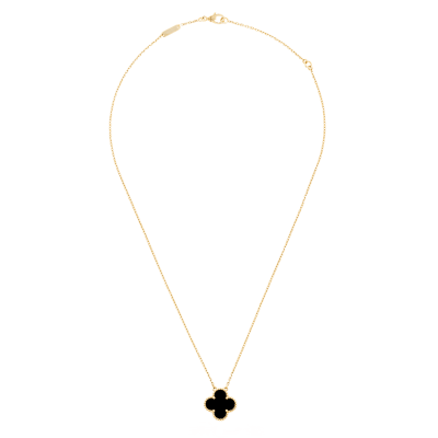 【包邮包税】Van Cleef & Arpels/梵克雅宝 经典 Vintage Alhambra四叶草项链 黄K金, 缟玛瑙