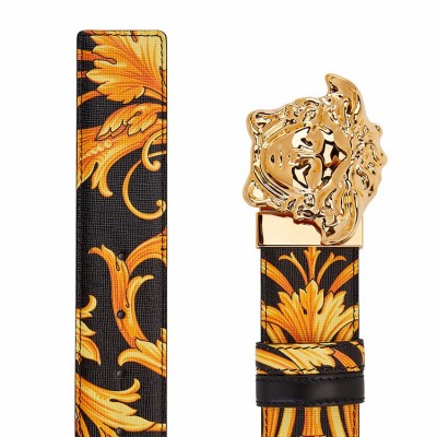 VERSACE/范思哲 黑色男士银色美杜莎板扣黑金系腰带皮带DCU4140-DVBRV【官方授权】