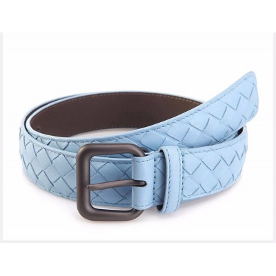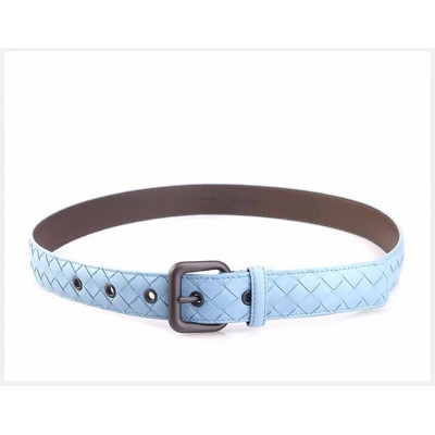 【情人节礼物】Bottega Veneta/葆蝶家 BV 女士蓝色羊皮手工编织针扣商务休闲皮带腰带 274470-V001O-4906